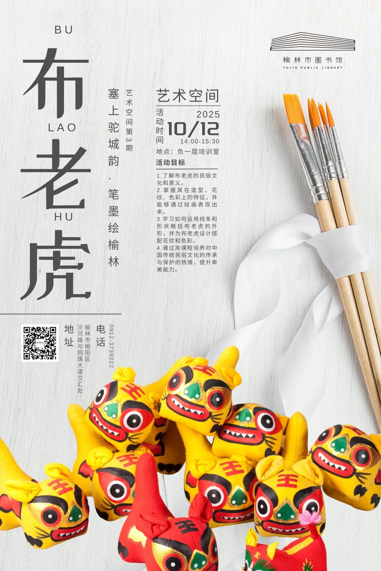 10月12日14:00-15:30 | 艺术空间第3期“塞上驼城韵·笔墨绘榆林”—布老(上) | 负一层培训室 |