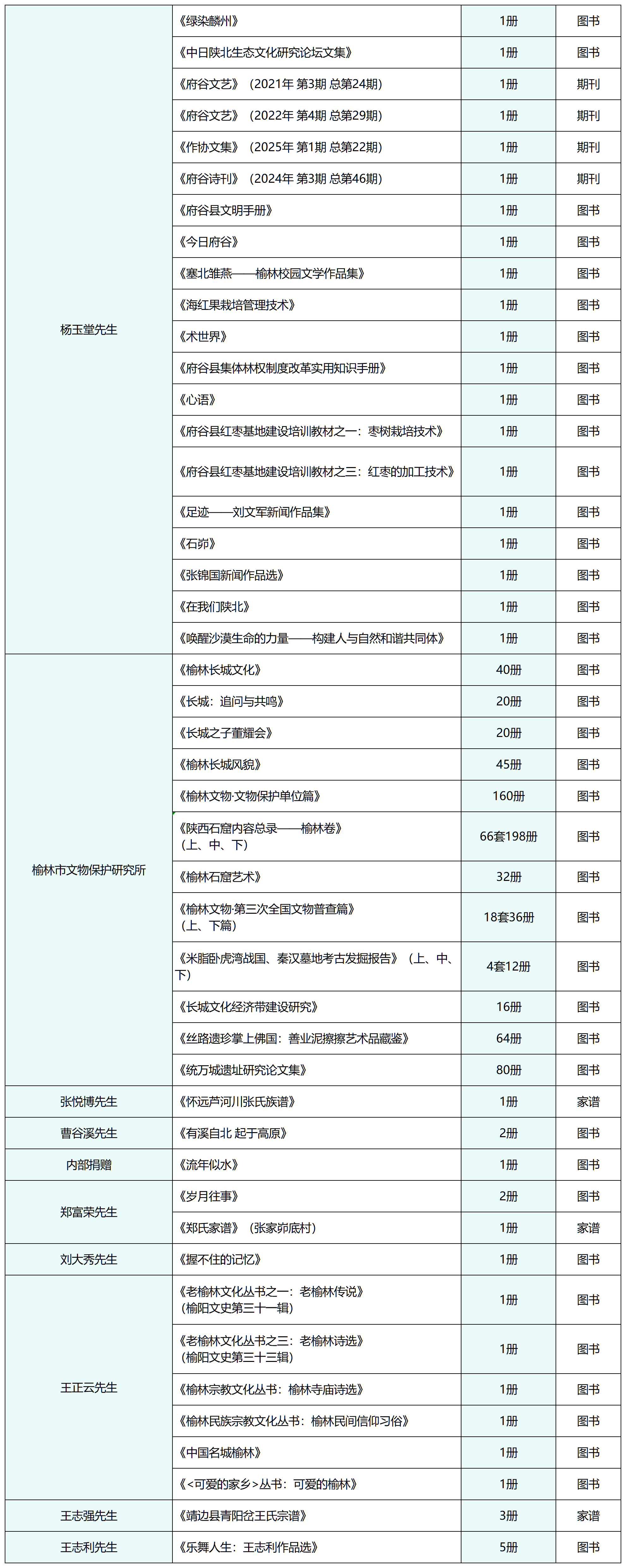 馆情动态|“书香榆图 · 文献共藏” ——10月地方文献捐赠名录