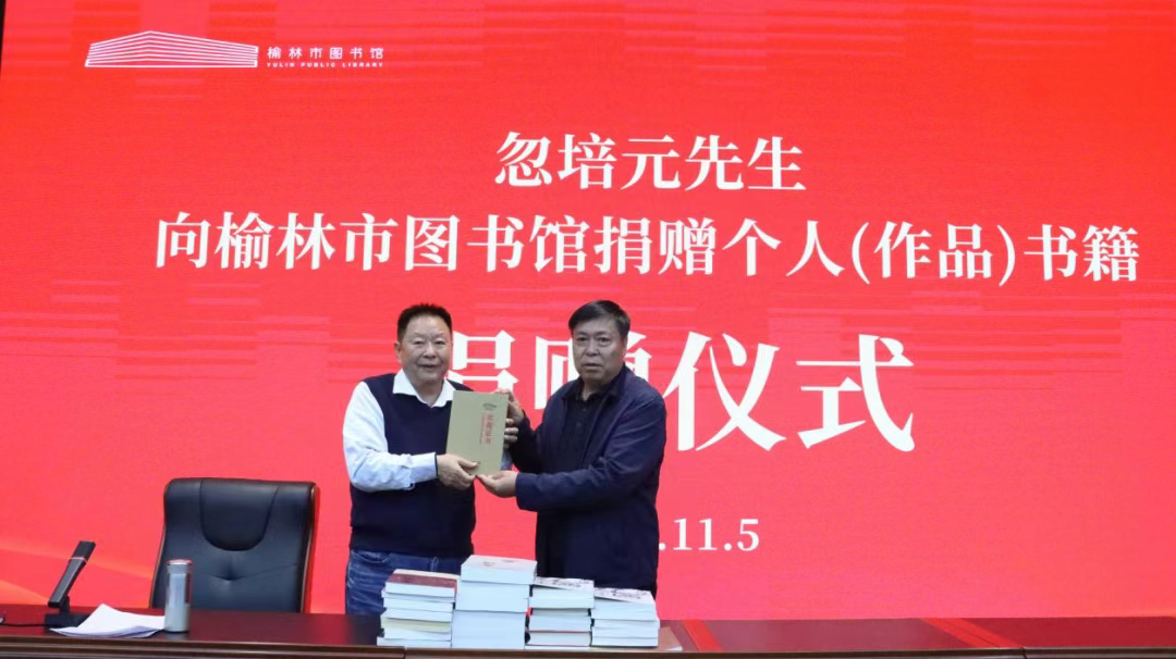 忽培元1955年生于延安,深耕文坛数十年,兼具政策研究与基层工作阅历,始终坚守“为人民抒怀、为时代立传”的创作理念。其作品扎根人民、映照时代,累计出版三十余部,斩获中国优秀传记文学奖、中华铁人文学奖等多项殊荣,部分作品被译介海外或改编为影视精品,影响深远。此次捐赠的图书堪称其创作生涯的精华集锦,既含被誉为“红色传记经典”的《苍生三部曲》——耗时20年打磨的百万字力作,以西北革命先驱马文瑞同志为线索,全景式展现中国革命、建设与改革开放的壮阔历程,其中《群山》获评中国优秀长篇传记文学奖,入选北大等高校文科指定阅读书目;也有聚焦现实的重磅佳作:入选“中共百年百部红色经典”的《乡村第一书记》(改编为央视热播剧《花开山乡》)、2024年度“中国好书”《同舟》,两部作品深耕“三农”题材,生动刻画基层建设者的责任担当。此外,双语长诗《纪念白求恩》传承国际主义精神,《耕耘人生·木刻家修军评传》《糊涂百年:郑板桥传》深挖文艺家精神世界,《家风》《地耳集》等散文随笔于质朴文字中传递传统美德与生活哲思,加之精装版《群山:马文瑞与西北革命》、《难忘的历程》(含中国报告文学特刊及普通版)等稀缺版本,既丰富了榆林市图书馆红色文化与现实题材馆藏,更添学术研究与收藏价值。