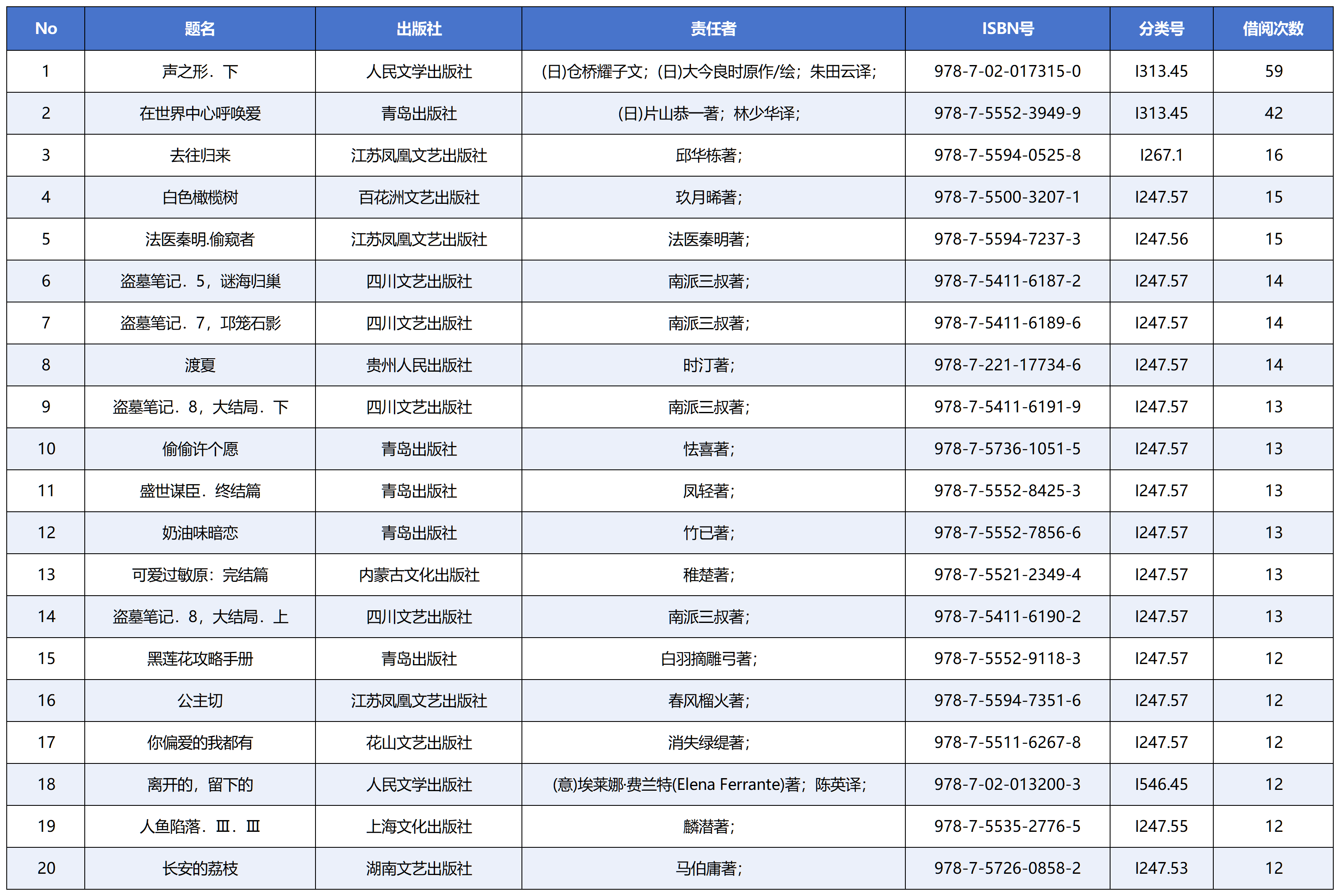 借阅热门图书一览|十一月份图书借出排行榜