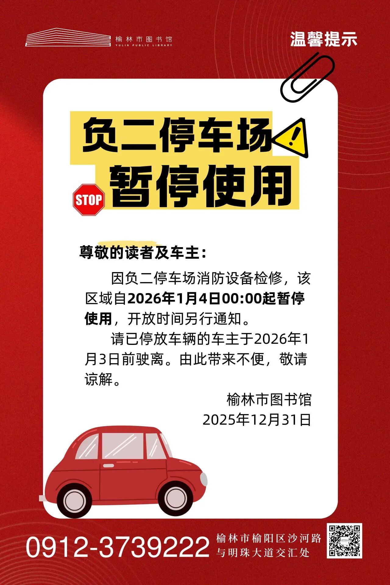 通知|榆林市图书馆负二停车场将暂停使用,车主请留意!