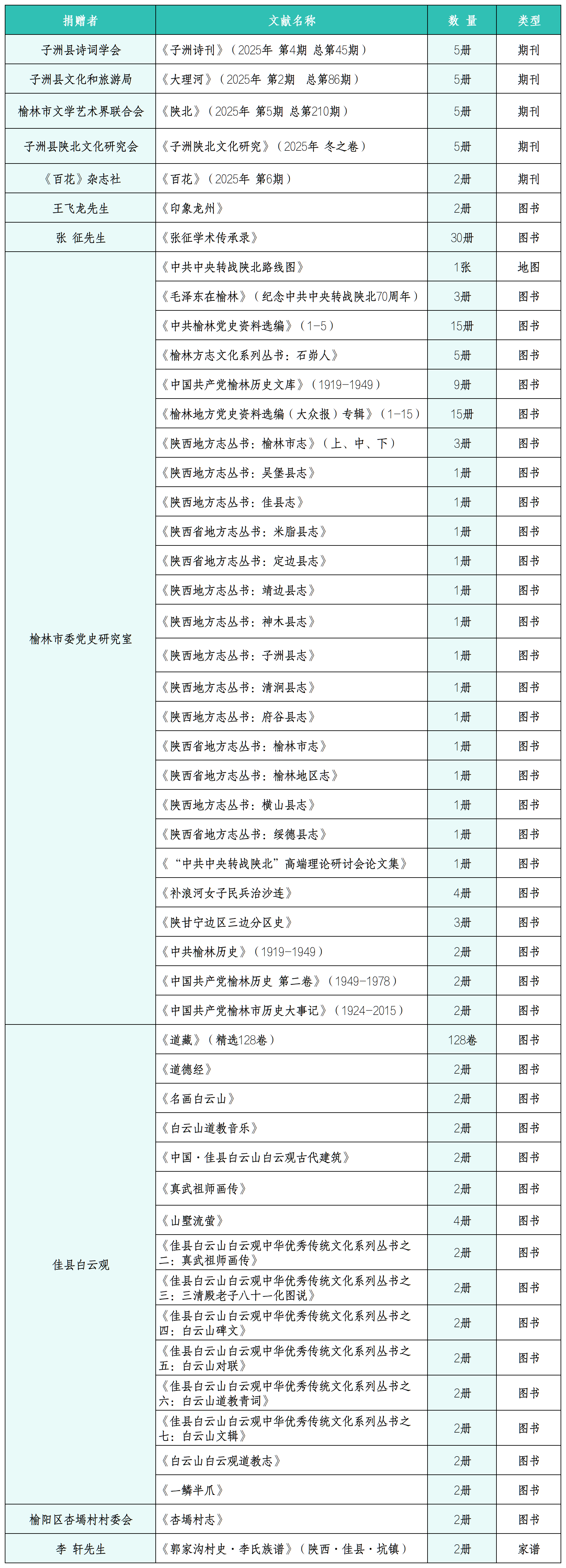 馆情动态|“书香榆图 · 文献共藏” ——12月地方文献捐赠名录