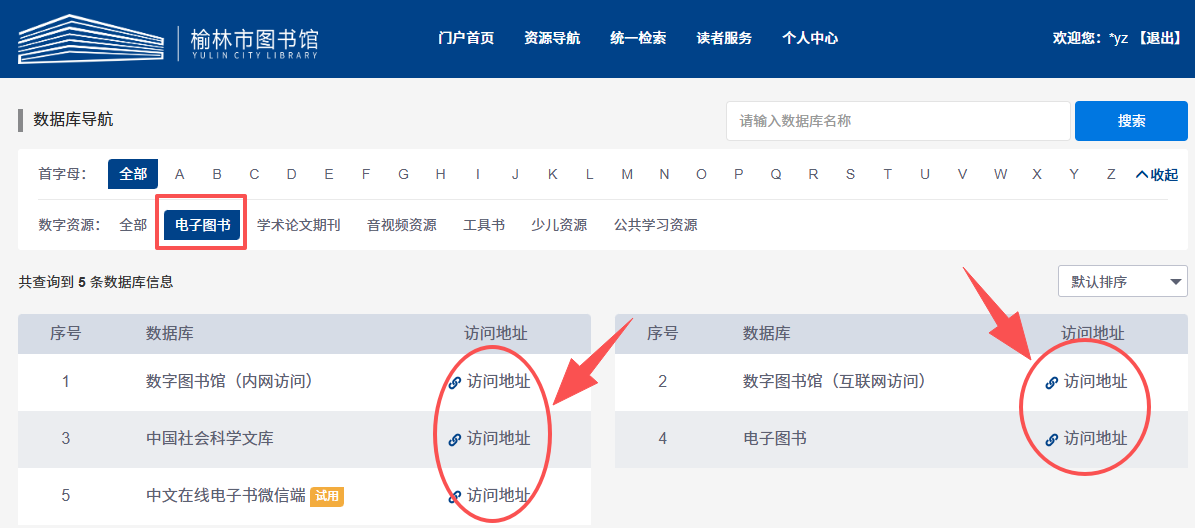 登录读者证号可在馆内/外直接访问图书馆数字资源,未注册读者证号请在一楼东大厅读者服务台办理或者关注「榆林市图书馆」微信服务号,点击底部菜单栏【借阅服务】中的【在线办证】,需人脸识别认证后方可注册成功,默认密码为出生年月日共八位数字。