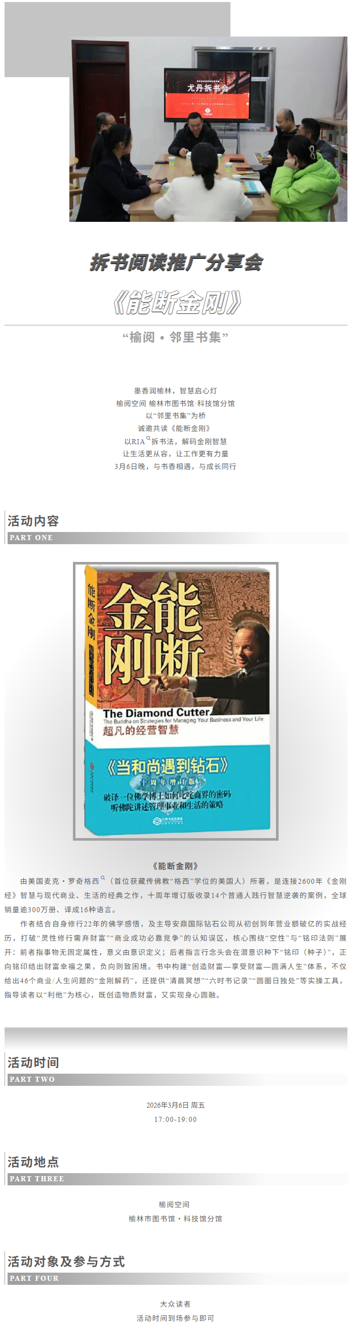 榆阅空间 榆林市图书馆·科技馆分馆 活动预告|《能断金刚》—— 拆书阅读推广分享会