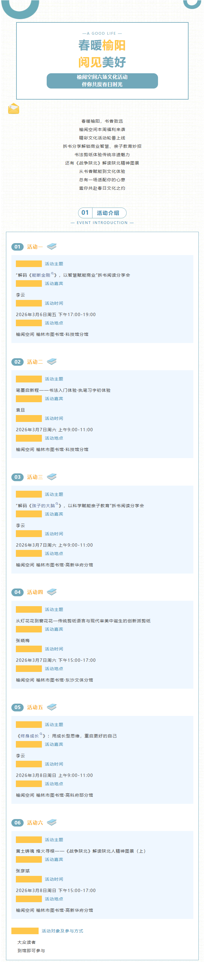 榆阅空间 本周活动总览 | 春暖榆阳·阅见美好