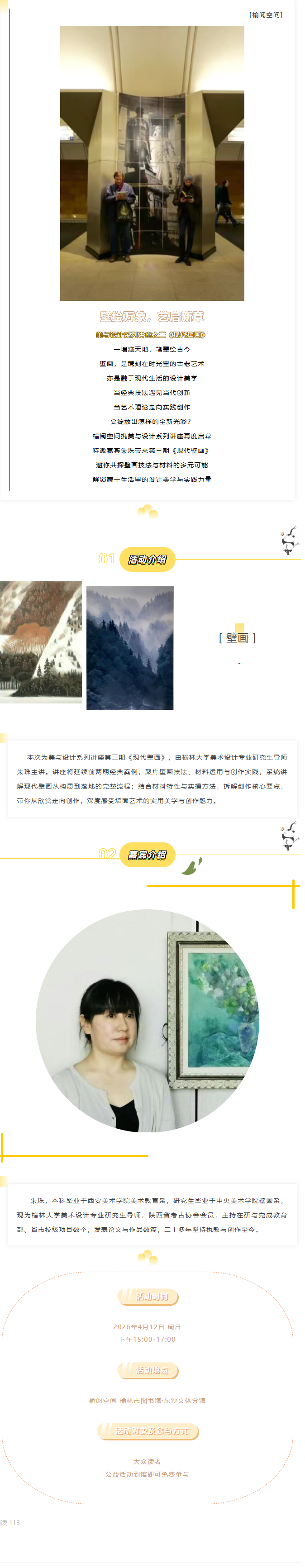 榆阅空间 榆林市图书馆·东沙文体分馆 | 壁绘万象,艺启新章——美与设计系列讲座(第三期)