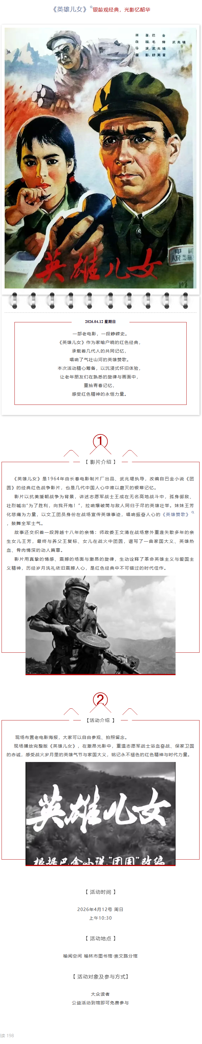 榆阅空间 榆林市图书馆·崇文路分馆 | 银龄观经典,光影忆韶华——《英雄儿女》(第二期)