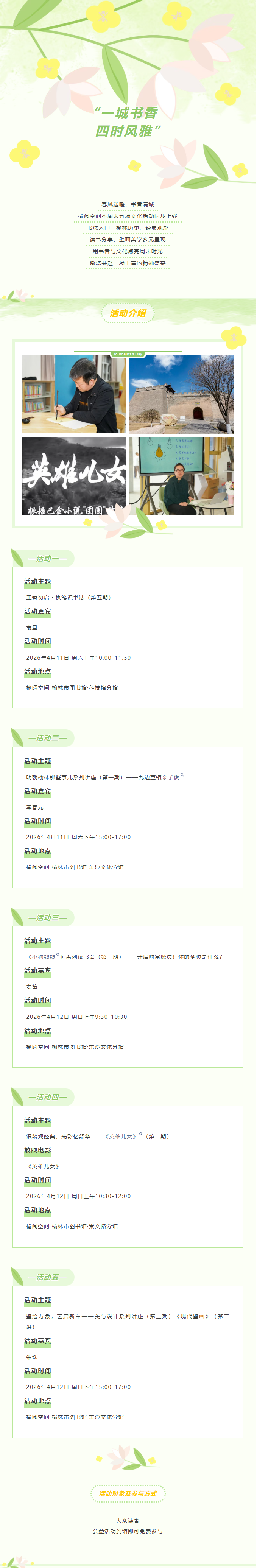 榆阅空间 本周活动总览 | 周末赴榆阅遇见新知与美好