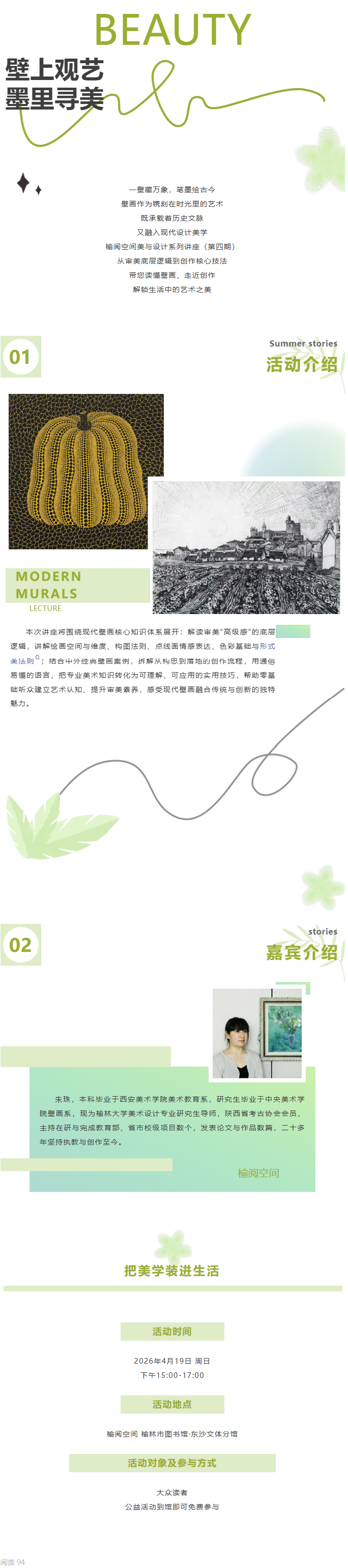 榆阅空间 榆林市图书馆·东沙文体分馆 活动预告 | 美与设计系列讲座(第四期)——《现代壁画》