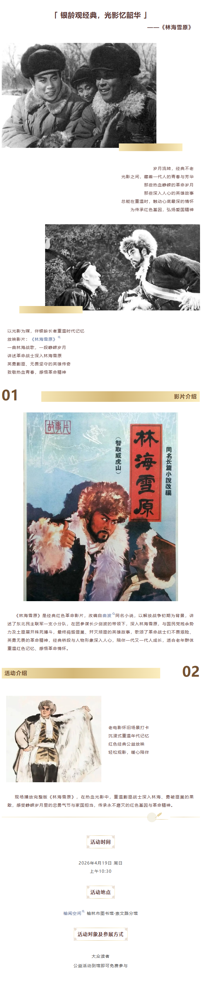 榆阅空间 榆林市图书馆·崇文路分馆 活动预告 | 银龄观经典,光影忆韶华——《林海雪原》(第三期)