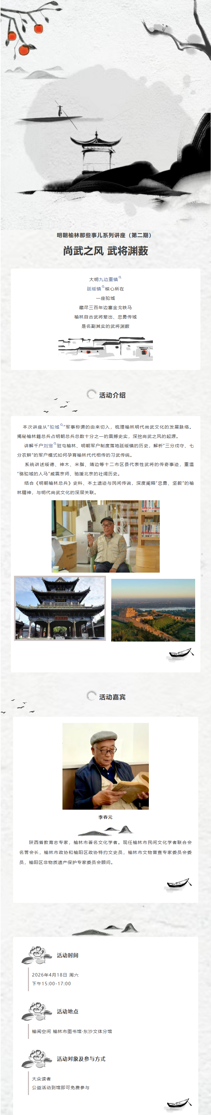 榆阅空间 榆林市图书馆·东沙文体分馆 活动预告 | 明朝榆林那些事儿系列讲座(第二期)——尚武之风